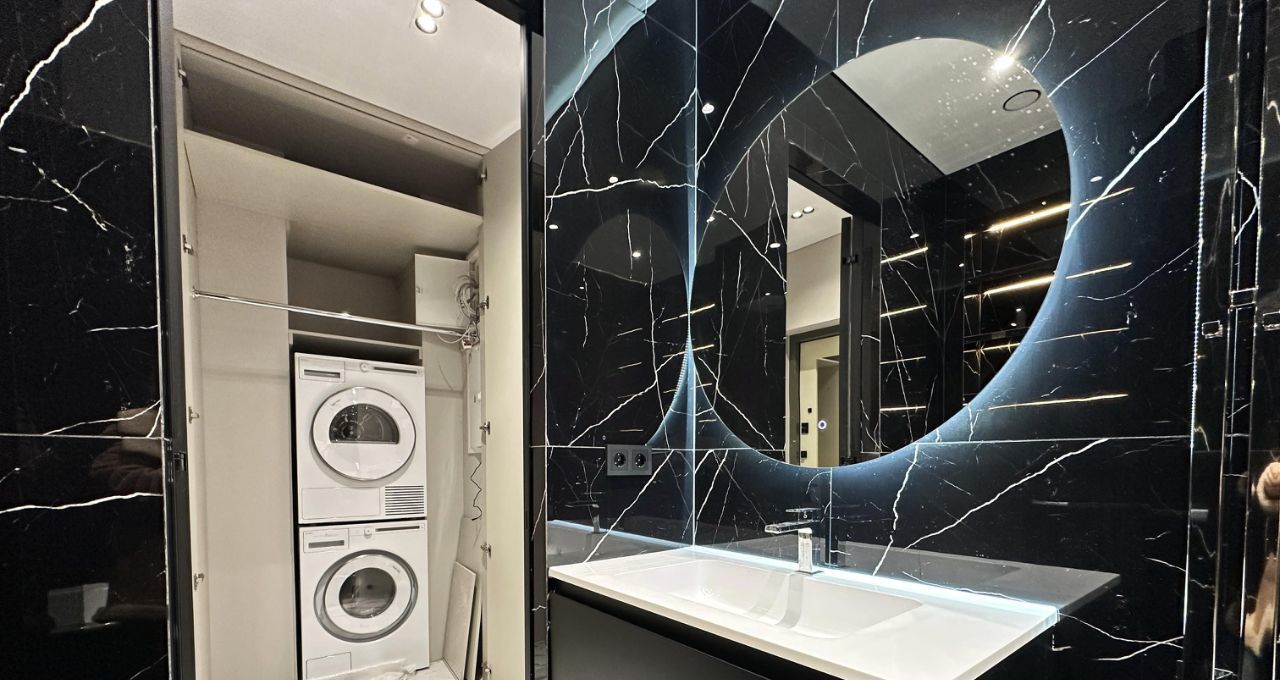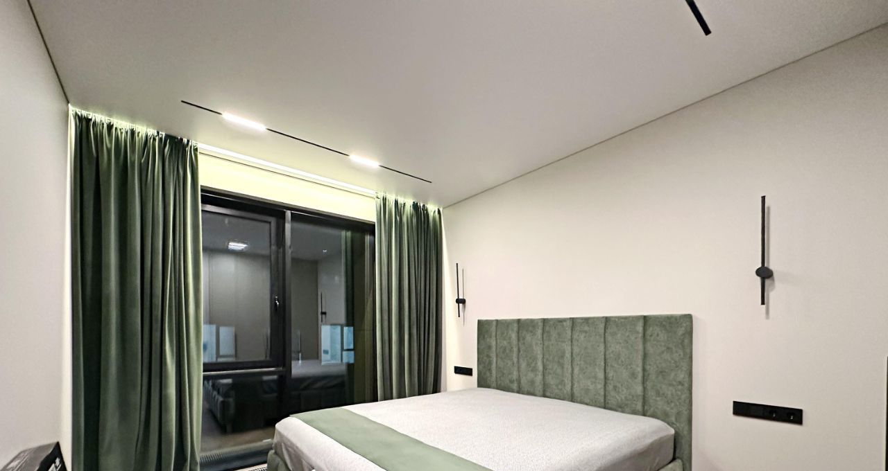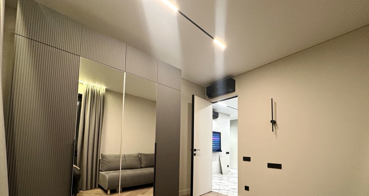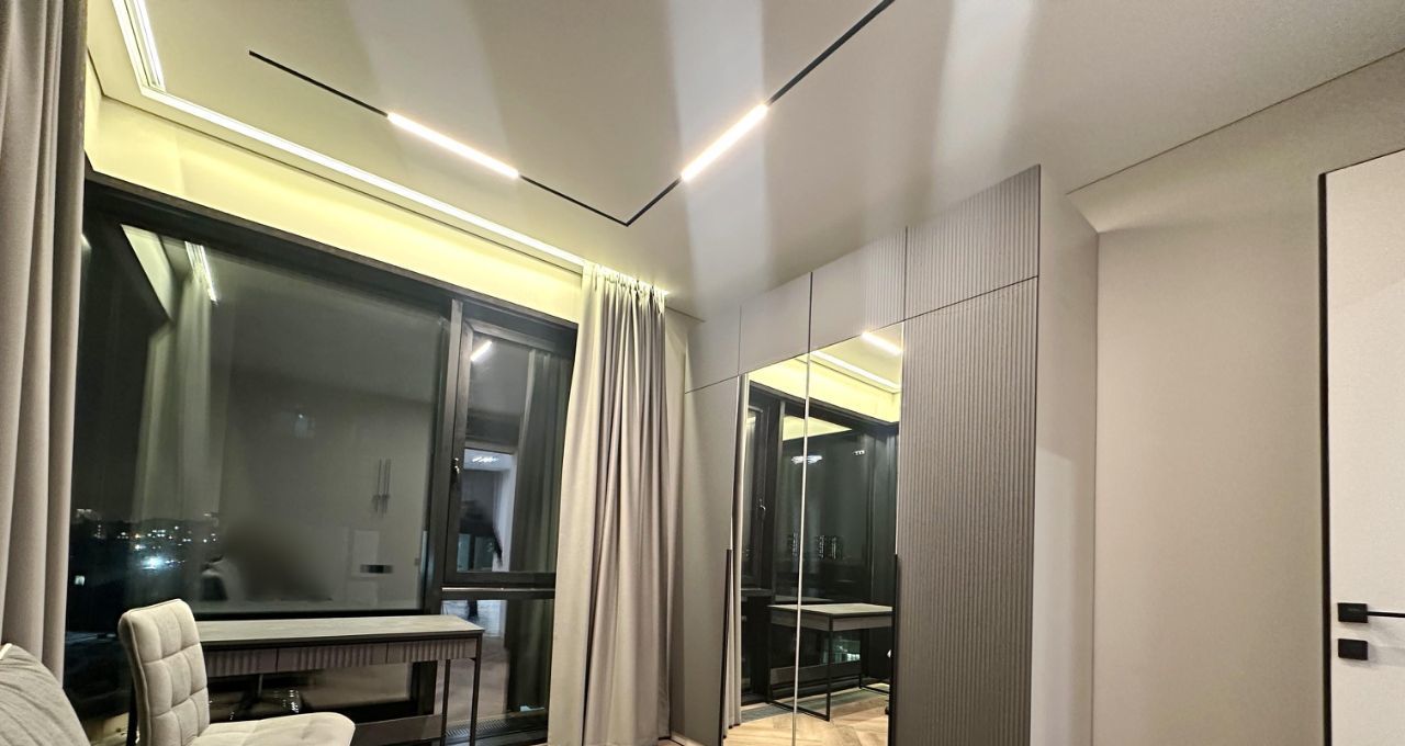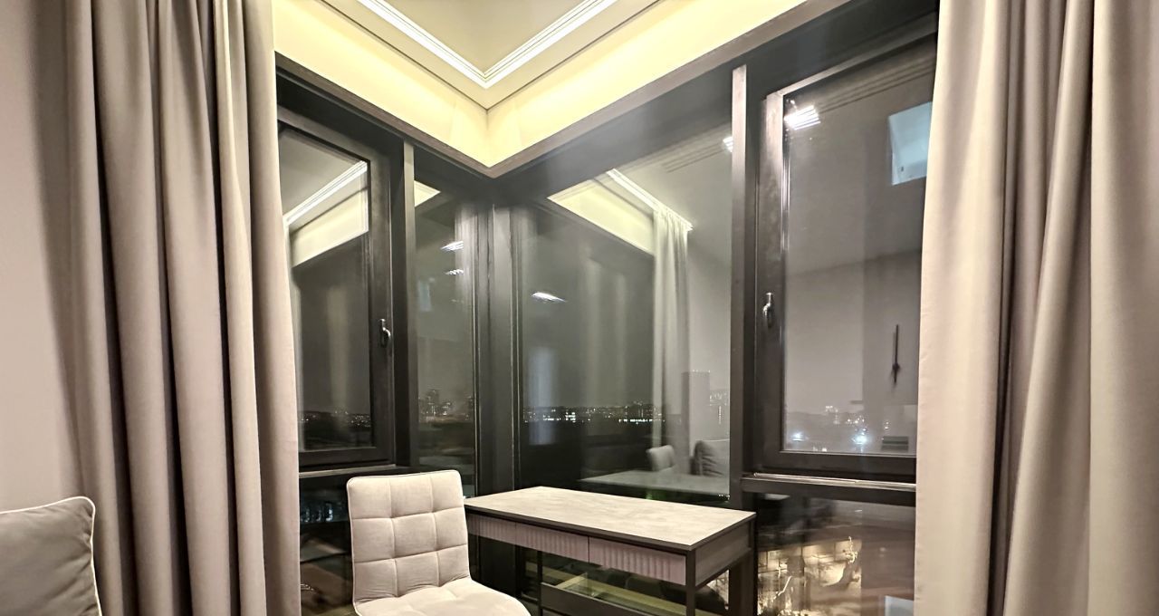Впервые предлагается великолепная квартира с дизайнерским ремонтом. Дорогой ремонт: парящие потолки, двери (2,40м) и плинтуса и петли на окнах скрытого монтажа, окна изолирующие шум и сквозняки. Современная мебель на заказ и бытовая техника от брендовых производителей: стиральная машина и сушильная машина марки АSKO, посудомоечная машина, измельчитель отходов, вся встроенная техника от Evelux. Панорамные окна на всю стену обеспечивают максимальный свет.