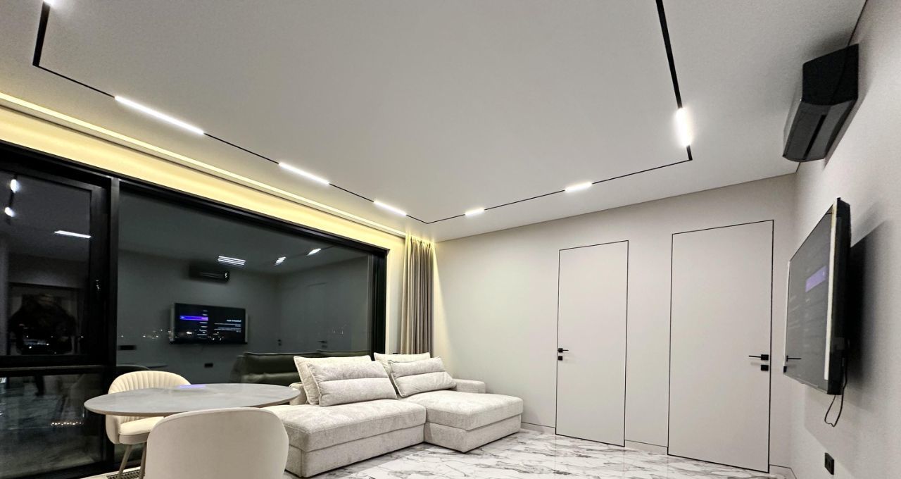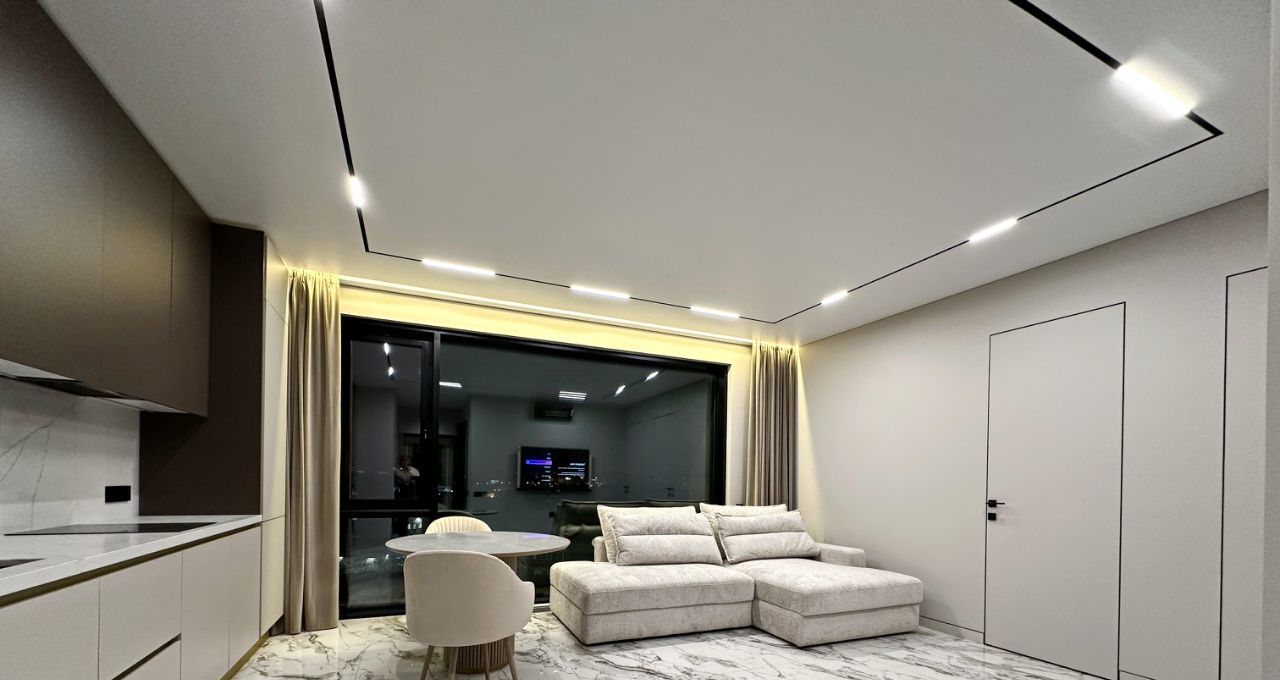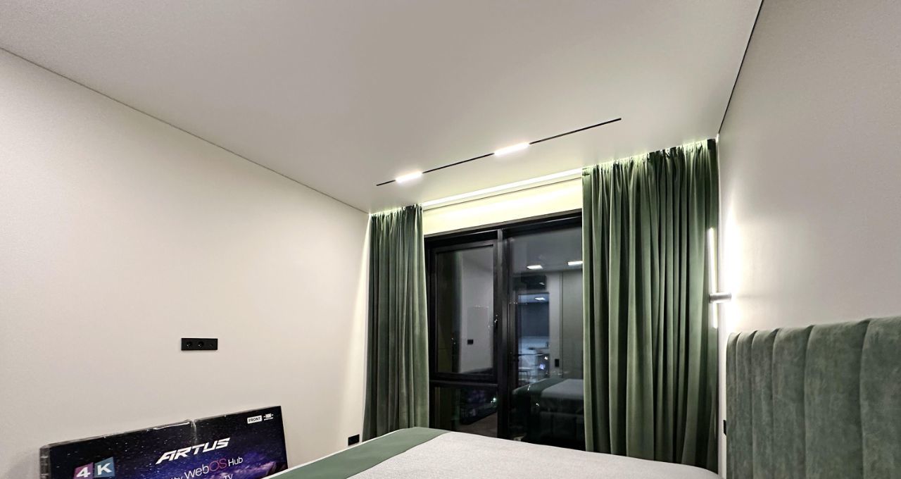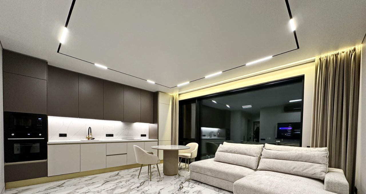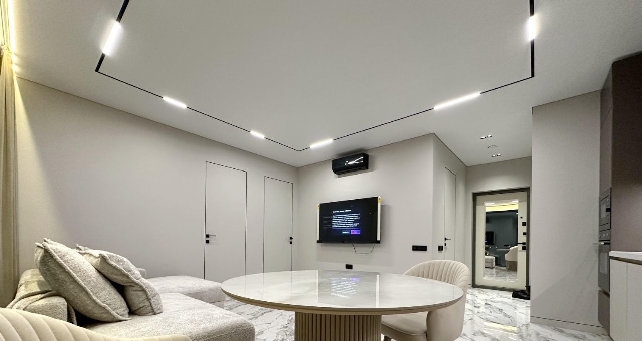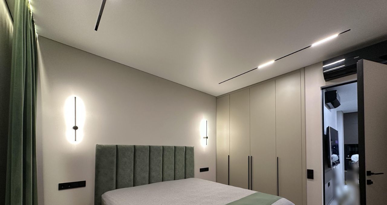Впервые предлагается великолепная квартира с дизайнерским ремонтом. Дорогой ремонт: парящие потолки, двери (2,40м) и плинтуса и петли на окнах скрытого монтажа, окна изолирующие шум и сквозняки. Современная мебель на заказ и бытовая техника от брендовых производителей: стиральная машина и сушильная машина марки АSKO, посудомоечная машина, измельчитель отходов, вся встроенная техника от Evelux. Панорамные окна на всю стену обеспечивают максимальный свет.