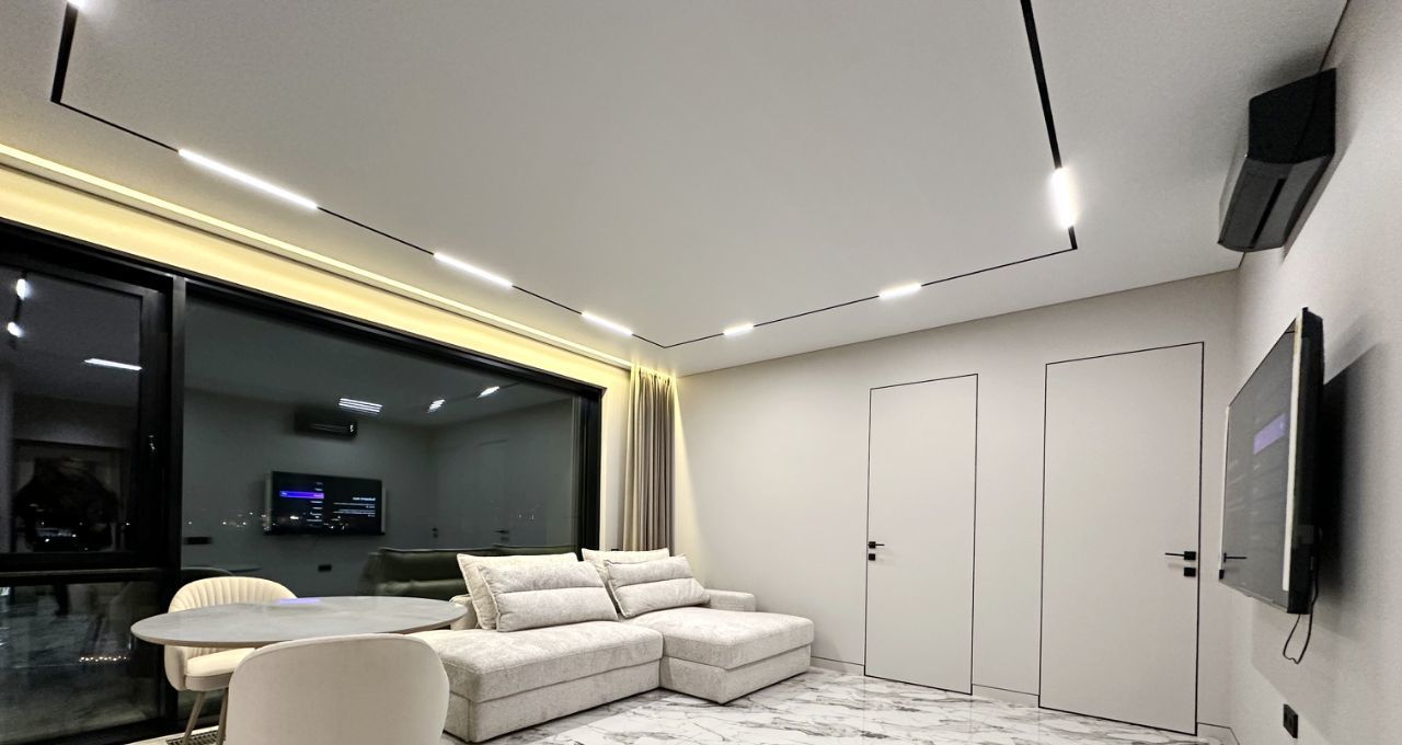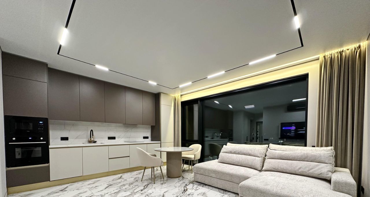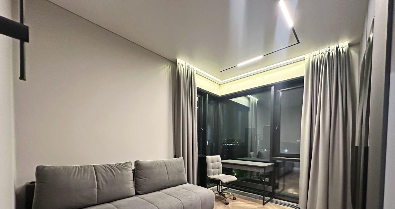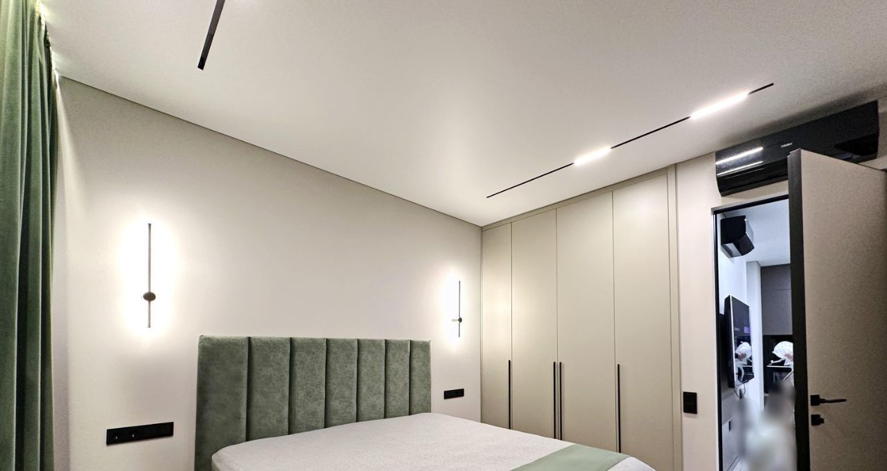 Впервые предлагается великолепная квартира с дизайнерским ремонтом. Дорогой ремонт: парящие потолки, двери (2,40м) и плинтуса и петли на окнах скрытого монтажа, окна изолирующие шум и сквозняки. Современная мебель на заказ и бытовая техника от брендовых производителей: стиральная машина и сушильная машина марки АSKO, посудомоечная машина, измельчитель отходов, вся встроенная техника от Evelux. Панорамные окна на всю стену обеспечивают максимальный свет.