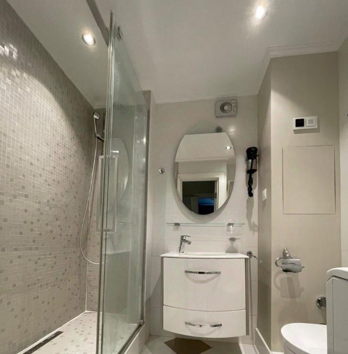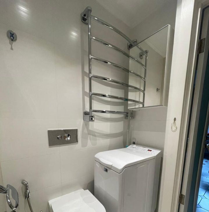 Квартира с дизайнерским ремонтом, полностью готова для комфортного проживания. В каждой комнате есть мебель, на кухне — современный гарнитур. Из техники присутствуют кондиционер, холодильник, посудомоечная машина, робот пылесос, телевизор и стиральная машина, чайник, духовой шкаф, микроволновая печь. Санузел совмещенный, в ванной комнате установлена душевая кабина. Окна выходят во двор.