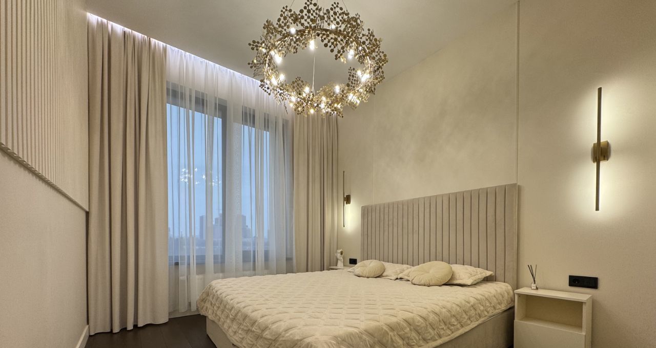 Level Стрешнево. Выполнен качественный дизайнерский ремонт. Удобная планировка квартиры, включающая просторную кухню-гостиную, вместительную гардеробную комнату (установлена стиральная машина с функцией сушки), ванную комнату и 2 изолированные спальни. Множество мест для хранения (встроенные шкафы в каждой комнате).