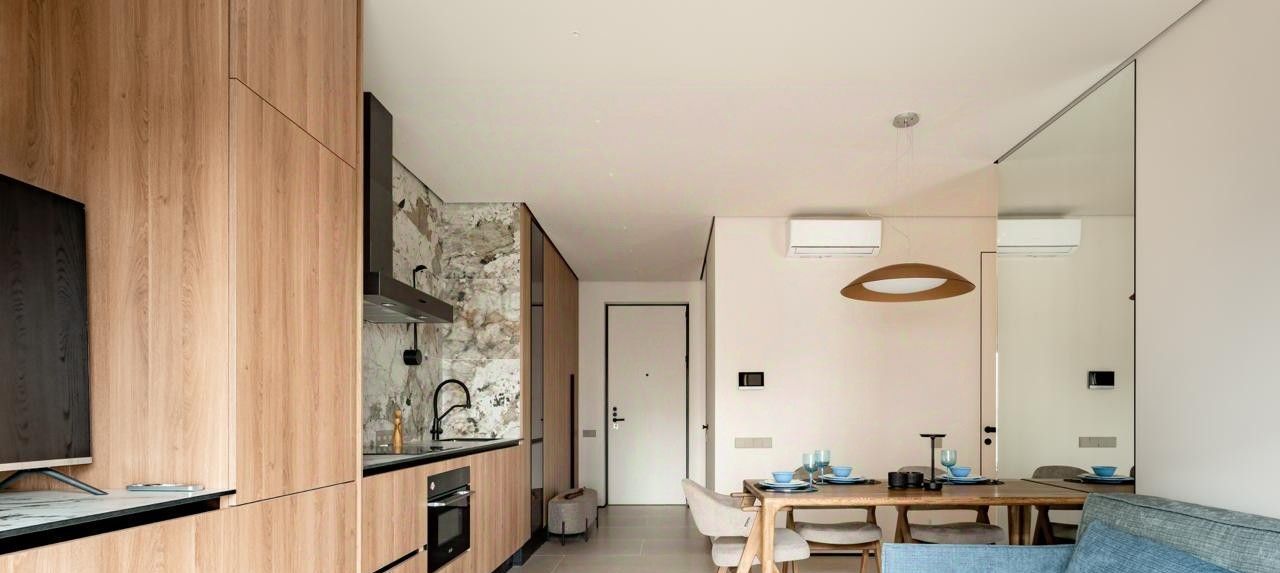 В аренду предлагается трехкомнатная квартира c отделкой на 23 этаже 52-этажного корпуса Indian в ЖК "City Bay". Дизайнер реализовал проект в спокойных тонах, перекликающийся с концепцией и цветовыми решениями ЖК.