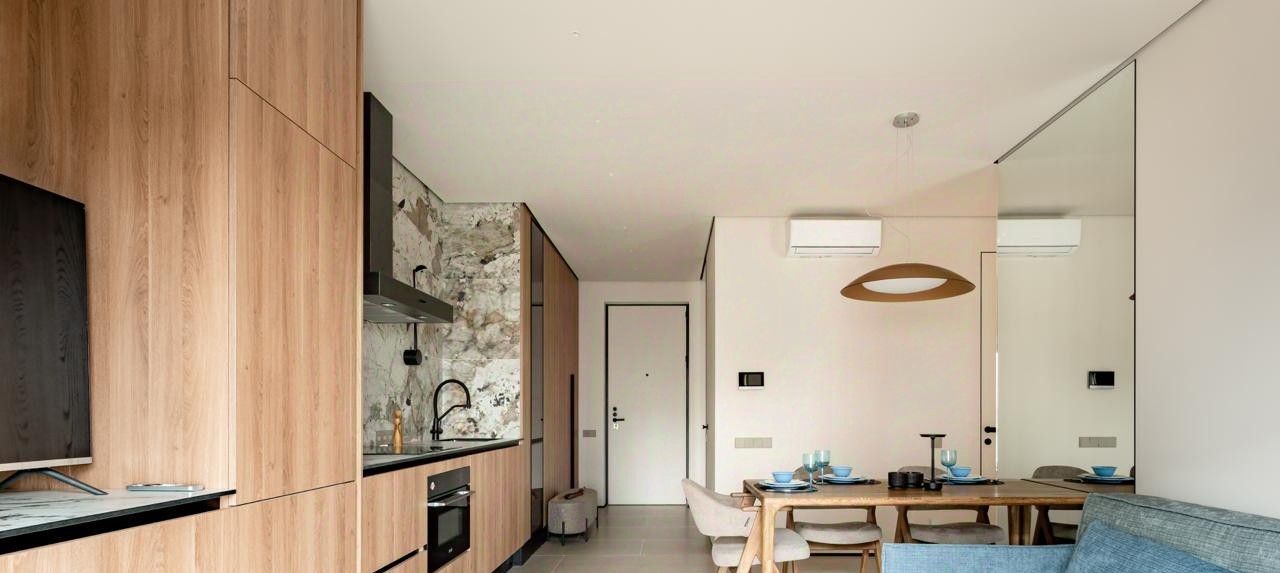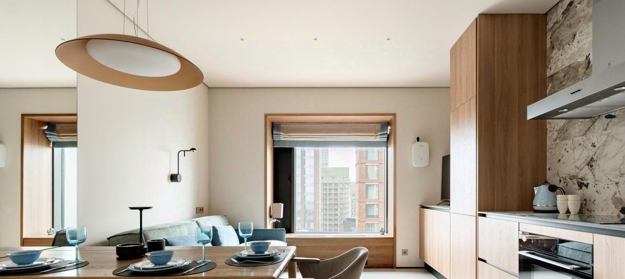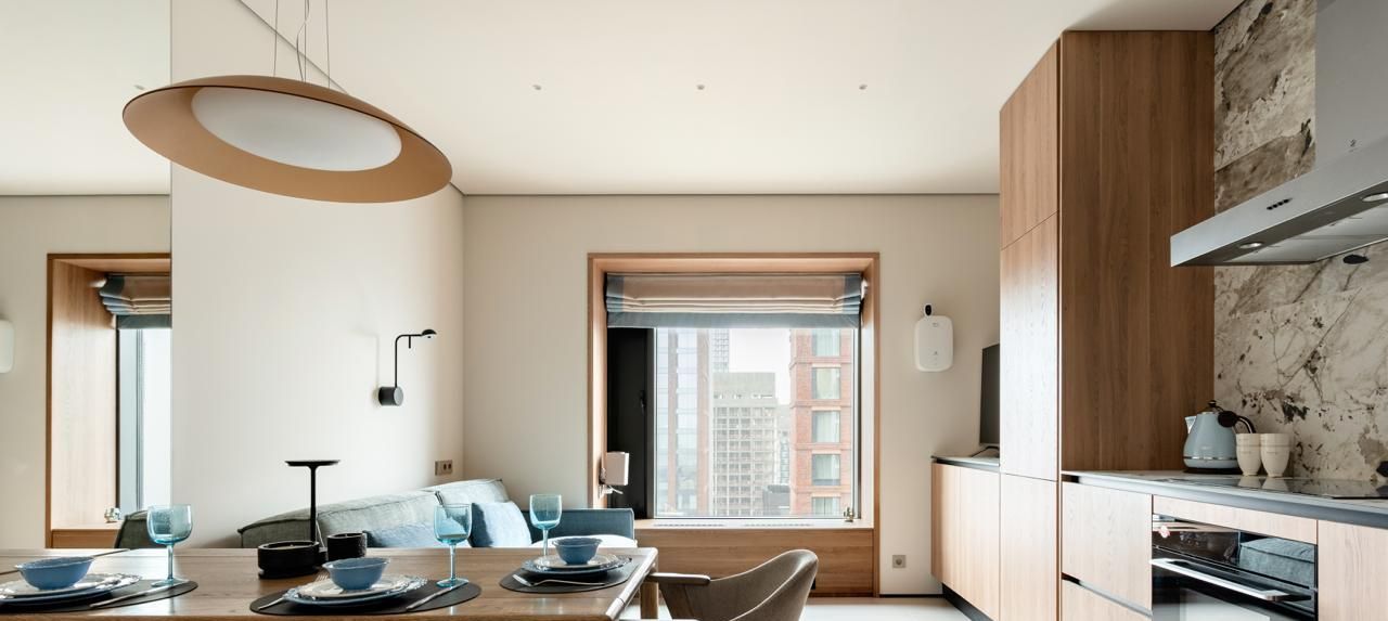 Отделка производилась с нулевого цикла, после полного демонтажа "прекрасной отделки white box" от застройщика с фотофиксацией этапов и гарантией произведенных работ. Дизайнер реализовал проект в спокойных тонах, перекликающийся с концепцией и цветовыми решениями ЖК.