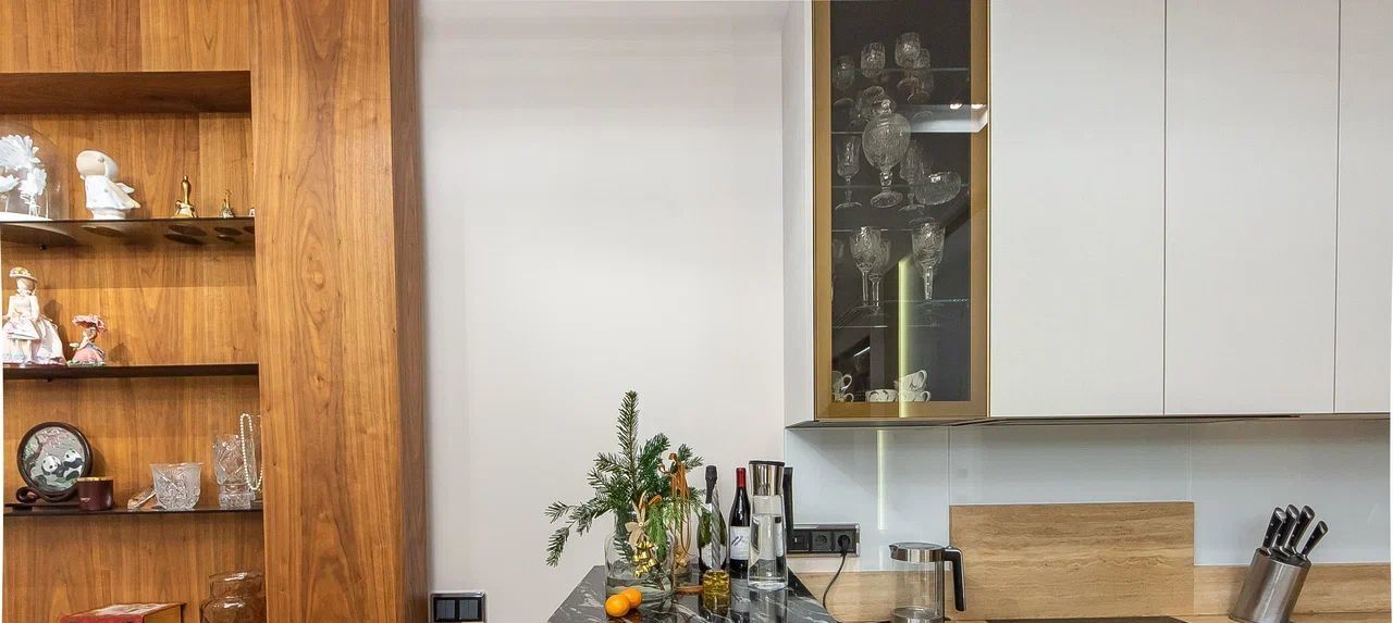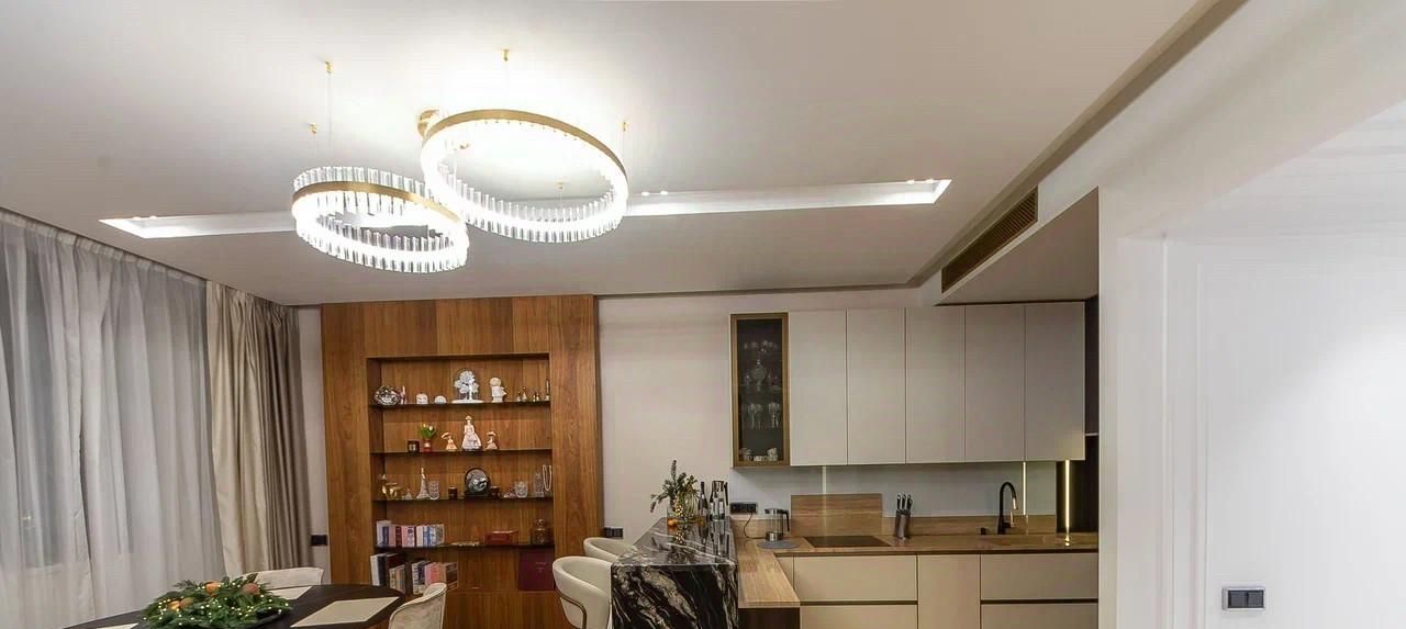 Достойная квартира в ЖК Воробьев Дом с потрясающими видами на МГУ и Воробьевы Горы, Москва Сити и Хамовники. Просторная кухня-гостиная с обеденной зоной, 2 спальни, 2 гардеробных и 2 санузла.