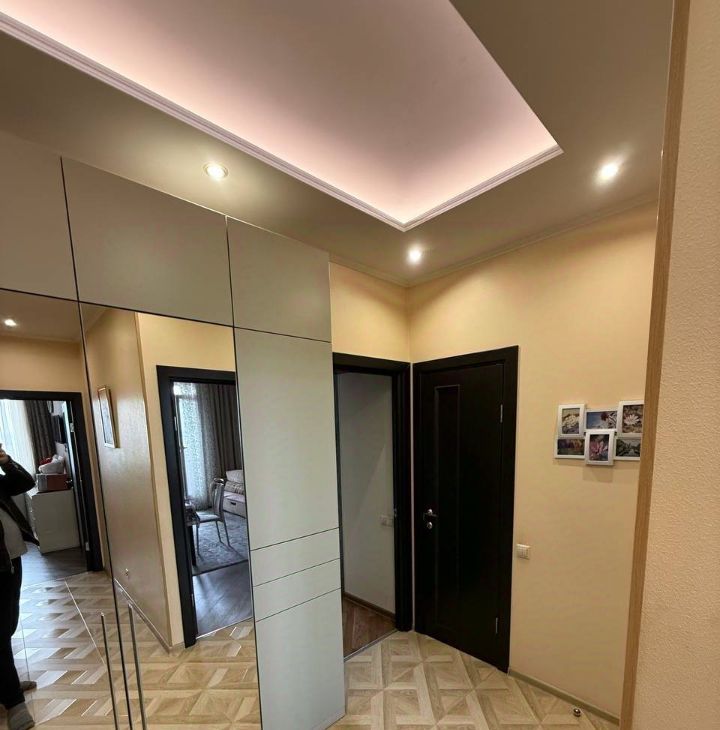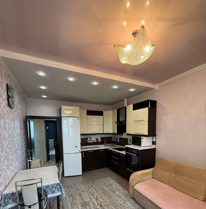 Холодильник, стиральная машина, посудомоечная машина, индукционная варочная панель, духовой шкаф, вытяжка, СВЧ, 2 телевизора, вся кухонная мебель, зоны хранения в прихожей и детской, кровать, диван, обеденная группа, гардеробная, кондиционер. Интернет от Ростелеком проведён — заезжайте и живите.