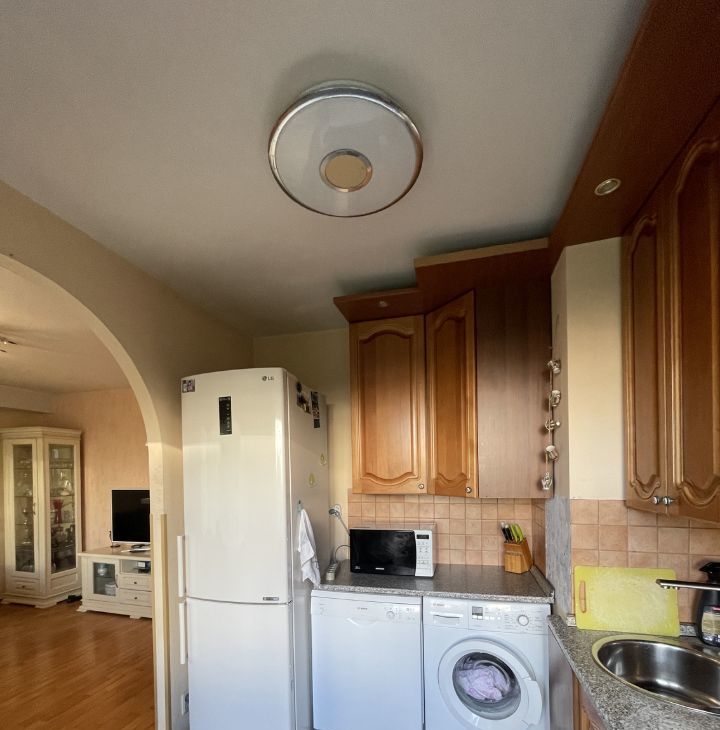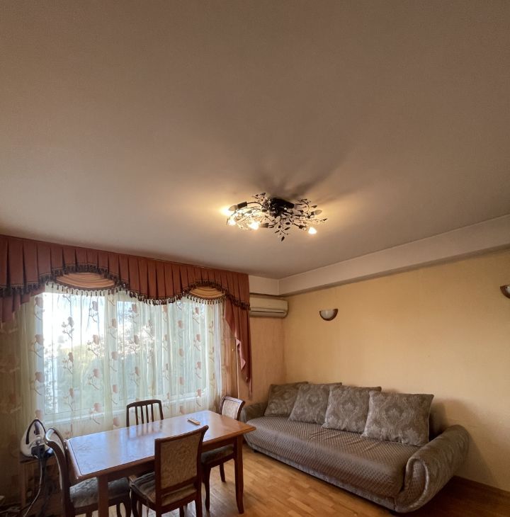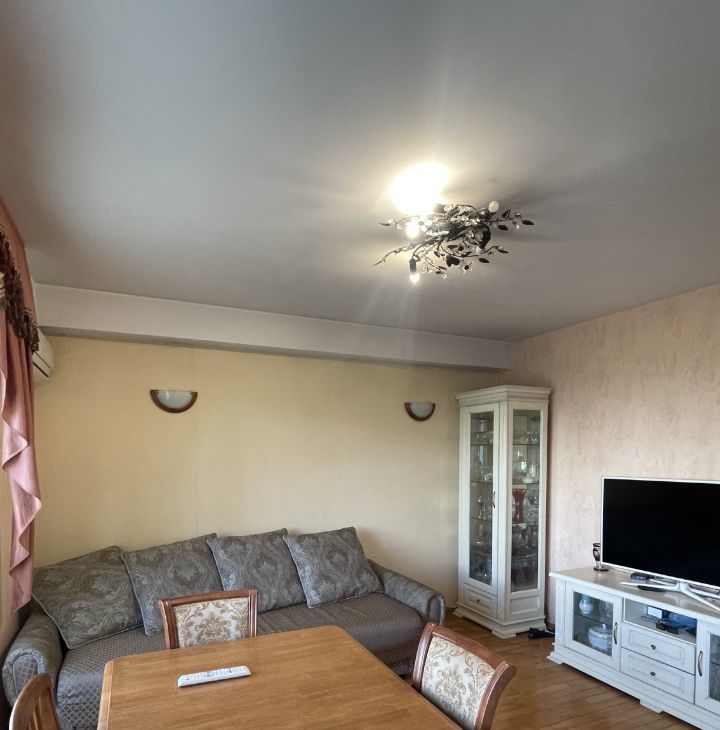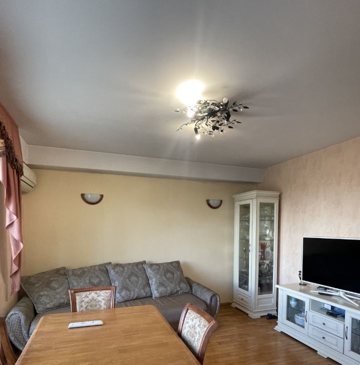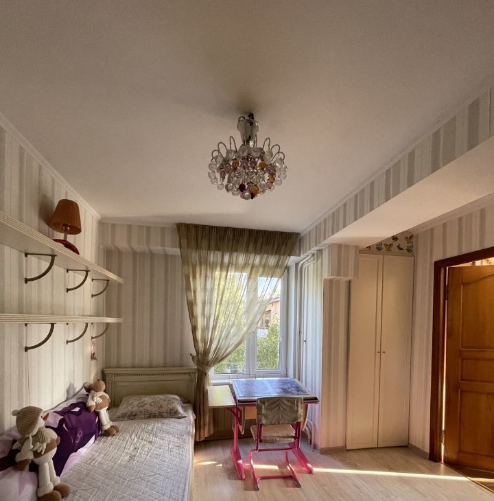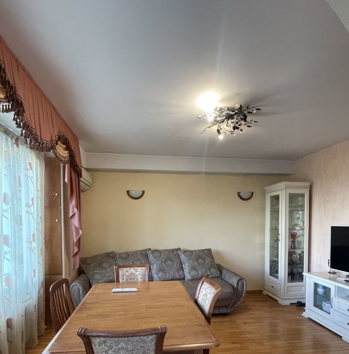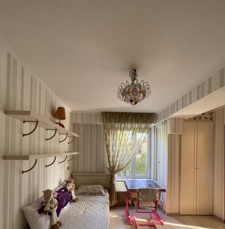 Сдается просторная квартира, с тремя отдельными спальнями и гостинной, совмещенной с кухней. Детские комнаты смежные. Обеденный стол готов собрать и встретить гостей. Мебель качественная, из массива. Множество мест для хранения.