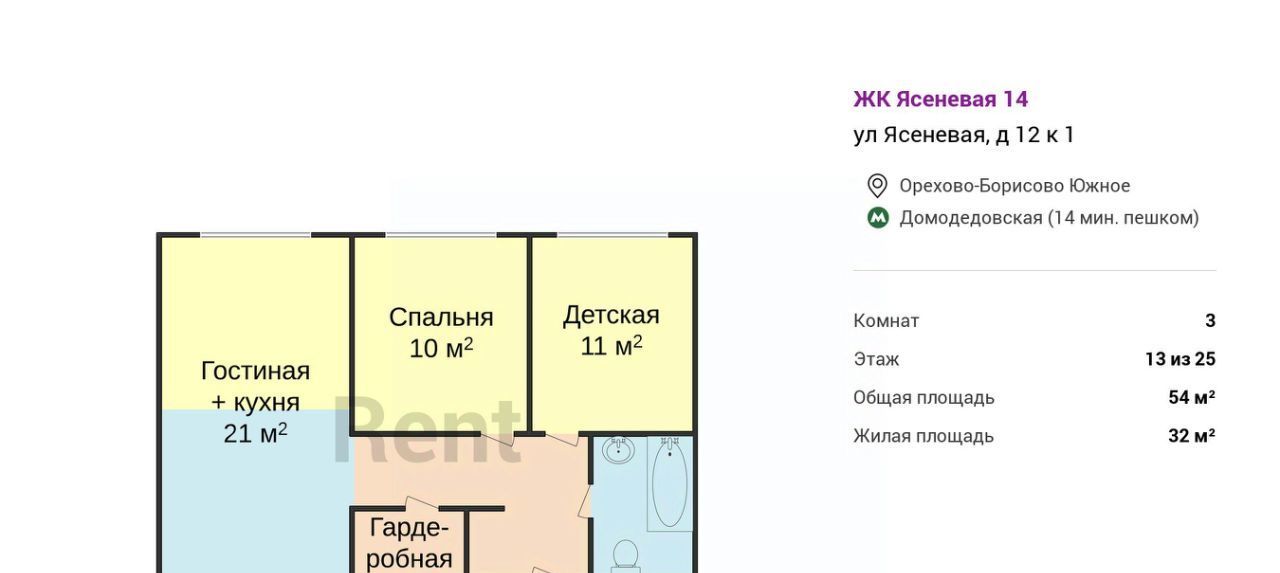 3-к кв. Москва Ясеневая ул., 12к1 (54.0 м²)