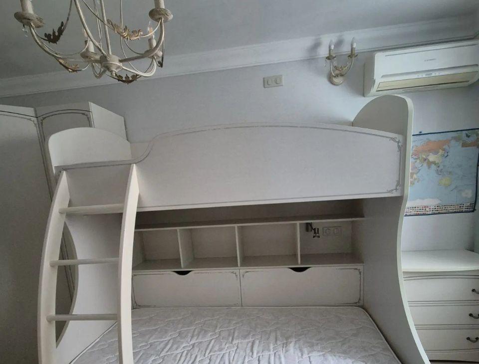 В ванной комнате расположена стиральная машина с сушкой, Гостиная- мягкая мебель, домашний кинотеатр. Есть детская комната с соответствующей мебелью. В спальне кровать , шкаф.