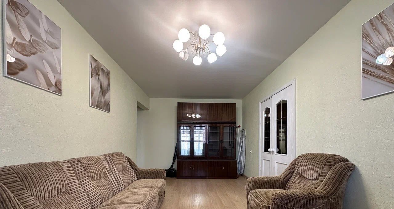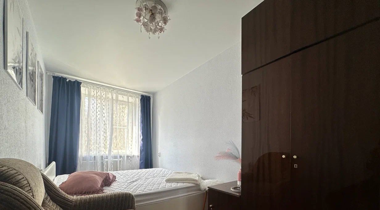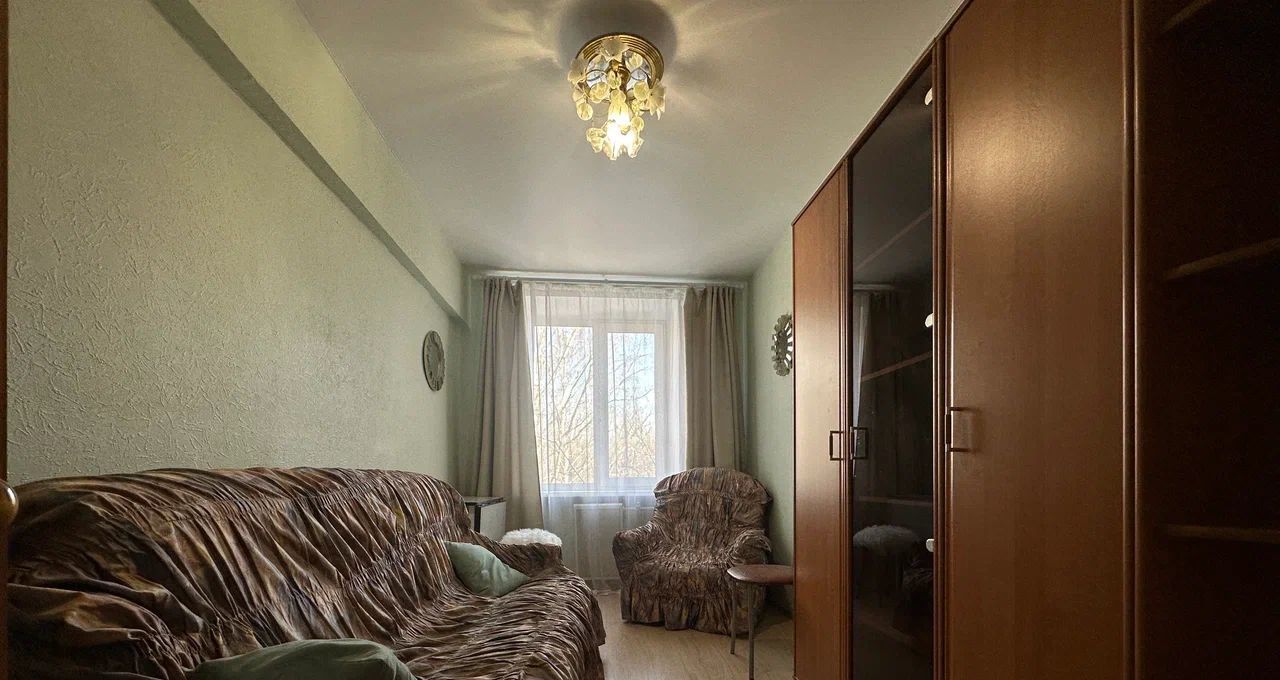 Общая площадь - 56.4 кв. м, жилая - 34.4 кв. м, кухня - 6 кв. м. Квартира расположена на 4 этаже 5-этажного кирпичного дома, построенного в 1963 году. Окна выходят во двор, поэтому будет тихо и комфортно.