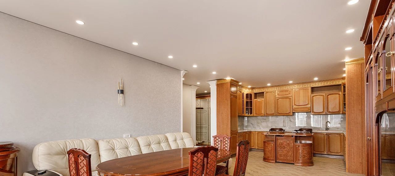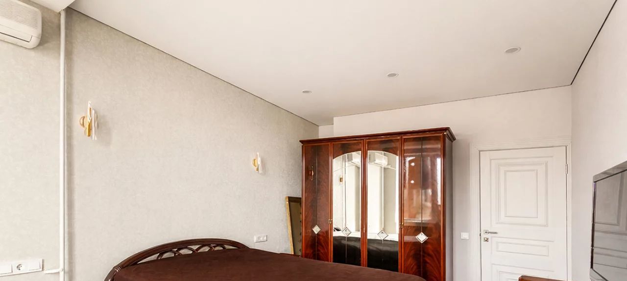 Квартира площадью 100 м² находится на 2 этаже и имеет удобную семейную планировку: две изолированные спальни, просторная кухня-гостиная, два санузла. Интерьер выполнен в добротном классическом стиле: качественная мебель, аккуратная отделка, светлые стены, теплые тона дерева, встроенные системы хранения, кондиционеры, полноценная обеденная зона и большая кухня с островом.