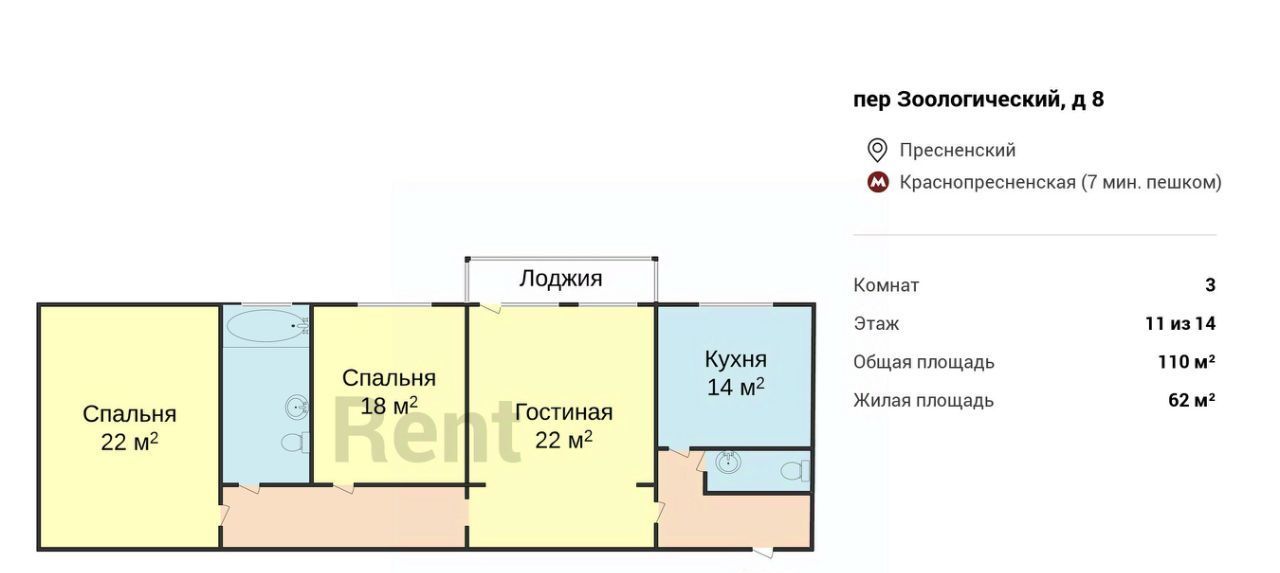 3-к кв. Москва Зоологический пер., 8 (110.0 м²)