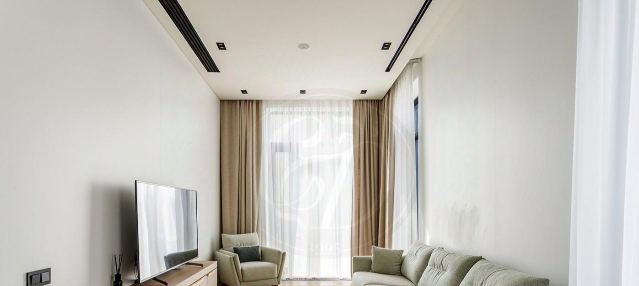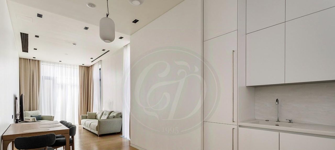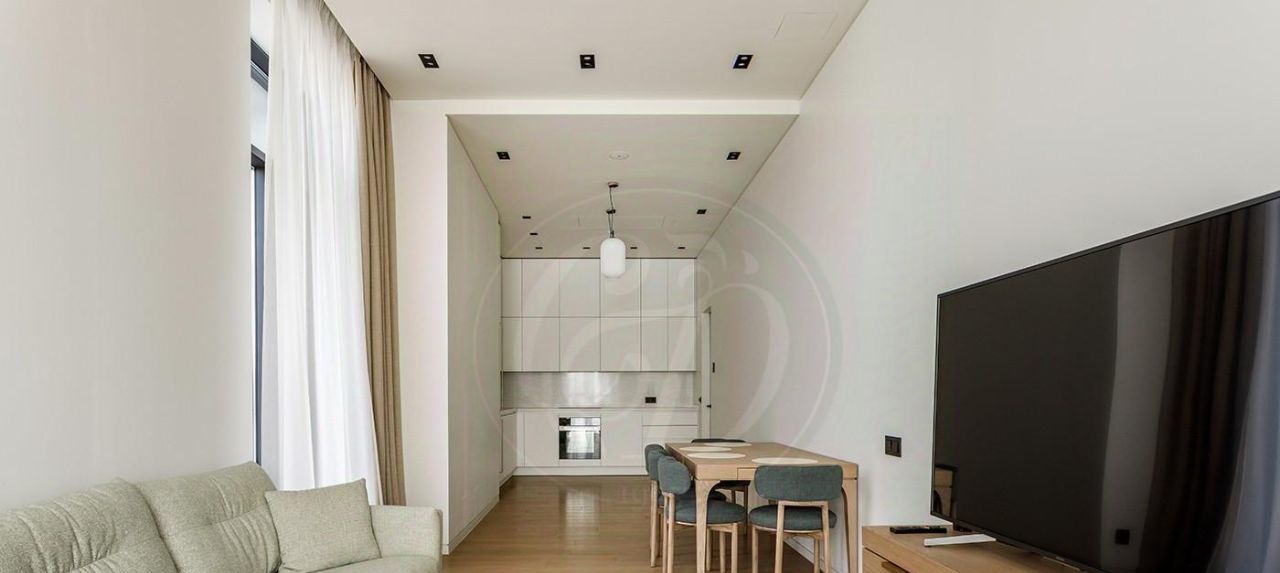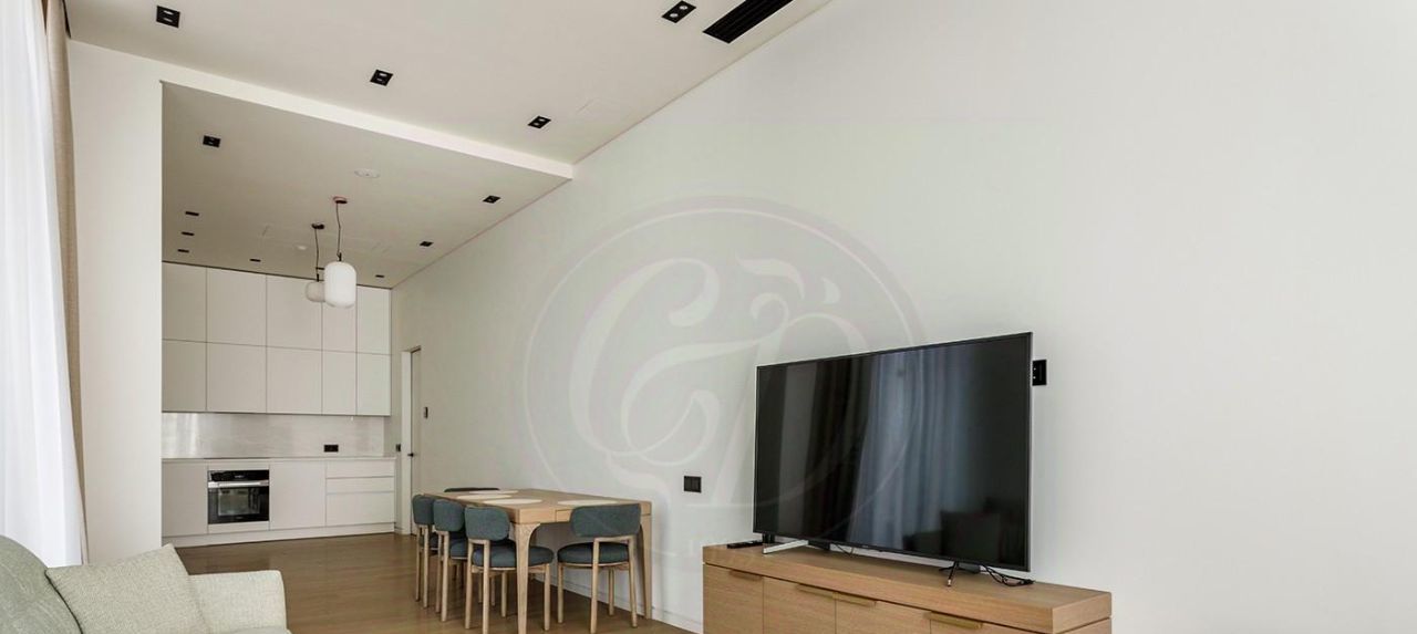 Планировка: светлая просторная гостиная с зоной кухни, две спальни, три санузла, гардеробная.