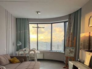 Впервые, предлагается в аренду на длительный срок шикарная, дизайнерская квартира студийной планировки.В квартире выполнен качественный евроремонт в светлых тонах, использовались дорогостоящие материалы.Планировочное решение включает в себя: кухню-гостиную, спальню со своим санузлом, детская комната, второй санузел с душевой кабиной.Встроенный кухонный гарнитур полностью укомплектован всей необходимой бытовой техникой от ведущих мировых производителей.Разноуровневое освещение.Кондиционеры в каждой комнате.Достаточно количество мест для хранения вещей.Высокий этаж, прекрасные видовые характеристики.Презентабельная входная группа.Подземный паркинг за дополнительную стоимость.Развитая инфраструктура района.