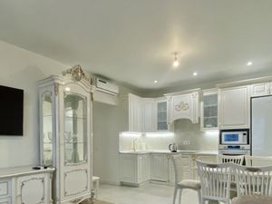 Огороженная и охраняемая территория. Видовая квартира на 18 этаже. Отличный ремонт в светлых тонах, дорогая итальянская мебель, в кухне встроенная бытовая техника, две изолированные комнаты. Климатическая система по всей квартире, две гардеробные с системой проветривания, пол- паркет, в санузлах, кухне, прихожей и на лоджии- плитка с подогревом. В гостиной - домашний кинотеатр. Два машиноместа в подземном паркинге входят в стоимость аренды, есть гостевой пропуск на 2 машиноместа во дворе.