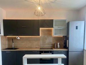 УНИКАЛЬНОЕ ПРЕДЛОЖЕНИЕ В ДАННОМ РАЙОНЕ ДЛЯ ЖИЛЬЦОВ СО СВОЕЙ МЕБЕЛЬЮ.Квартира после свежего качественного европейского ремонта в современном монолитном доме с подземным паркингом.Квартира студийного плана ,кухня-гостиная на одной стороне и две изолированные комнаты на другой стороне,окна из спален выходят в тихий двор.В квартире одна огромная лоджия( 8 метров) с выходом из двух комнат,на кухне большой балкон.Санузел 5 метров с ванной и душевой кабиной,биде.Огромный холл 16 метров.Приглашаем приличных людей максимум 3 человека-семью с ребенком,СТРОГО без ЖИВОТНЫХ.Во дворе дома два детских сада и школа,три детские площадки.