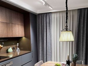 БЕЗ КОМИССИИ! Монолитный дом 2000г. Территория огорожена. Консьерж. Подземный паркинг за отдельную плату (есть 2 машиноместа). Квартира полустудийной планировки - единое пространство кухни и гостиной: прихожая, кухня, гостиная, спальня, детская, 2 санузла, 3 гардеробные, 1 лоджия/балкон. Дизайнерский ремонт. Полы - паркет. Эксклюзивная мебель в кухне. Эксклюзивная мебель в комнатах. ПММ. Кондиционеры. Есть ванна и душевая кабина. Строго без животных! Собственник рассмотрит исключительно славянскую семью с детьми школьного возраста!