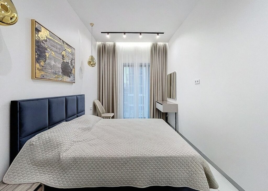 Превосходные трехкомнатные апартаменты в премиальном ЖК SLAVA. Высочайший уровень безопасности и сервиса. Апартаменты сдаются впервые! Элегантный авторский дизайн, приточно-вытяжная вентиляция, система умный дом. Апартаменты полностью меблированы и оснащены высококачественной техникой и оборудованием. . Планировка: холл, студия гостиная-кухня, две спальни, две ванные комнаты и гардеробная. Панорамные окна. Жилой комплекс с удобной транспортной доступностью и богатейшей внутренней инфраструктурой: магазины, рестораны, кофейни, студия йоги, салоны красоты, коворкинг и переговорные для резидентов. Имеется подземный паркинг, охрана и консьерж-сервис.