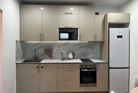 Кухня со встроенной техникой, микроволновка, чайник и др.