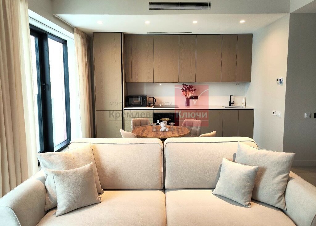 На длительный срок сдается светлая просторная трехкомнатная квартира в ЖК премиум-класса Симфония 34. Дизайнерский ремонт, совершенно новые мебель и бытовая техника из Италии, панорамные окна, высокие потолки, центральные вентиляция и кондиционирование, две изолированные спальни, одна из них с собственным санузлом, кухня-гостиная, прихожая с системой хранения, гостевой санузел, а также кладовка 5.25 м2, вынесенная за пределы квартиры, всего два совмещенных санузла, один с ванной, другой с душевой, стиральная машина с сушилкой, "Умный дом". В квартире никто не жил, ранее не сдавалась.