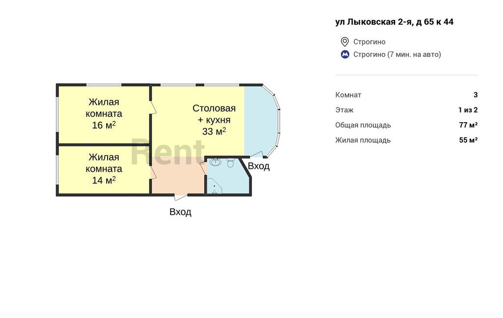 3-комнатная квартира: Москва, 2-я Лыковская улица, 65к44 (77 м²)
