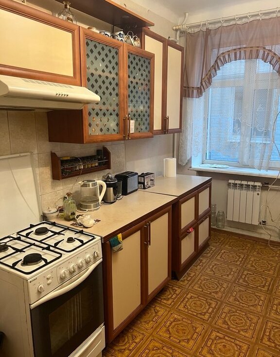 Кухня просторная - 15 кв.м., оснащена газовой плитой и необходимой бытовой техникой. В квартире имеется доступ к Wi-Fi.