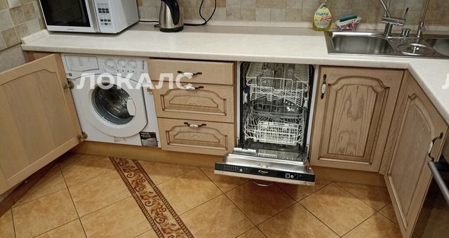 В квартире имеется вся необходимая мебель: шкафы, диван, обеденный стол и стулья. Также есть современная бытовая техника, включая холодильник, стиральную машину и посудомоечную машину. В гостиной установлен телевизор.