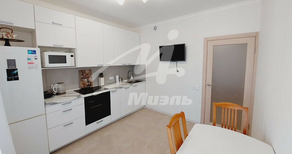 Кухня: Встроенный кухонный гарнитур, варочная панель, вытяжка, духовой шкаф, холодильник Samsung, посудомоечная машина, микроволновая печь, чайник, стол (раскладной), ТВ Samsung. Кухня укомплектована полностью всей необходимой посудой.