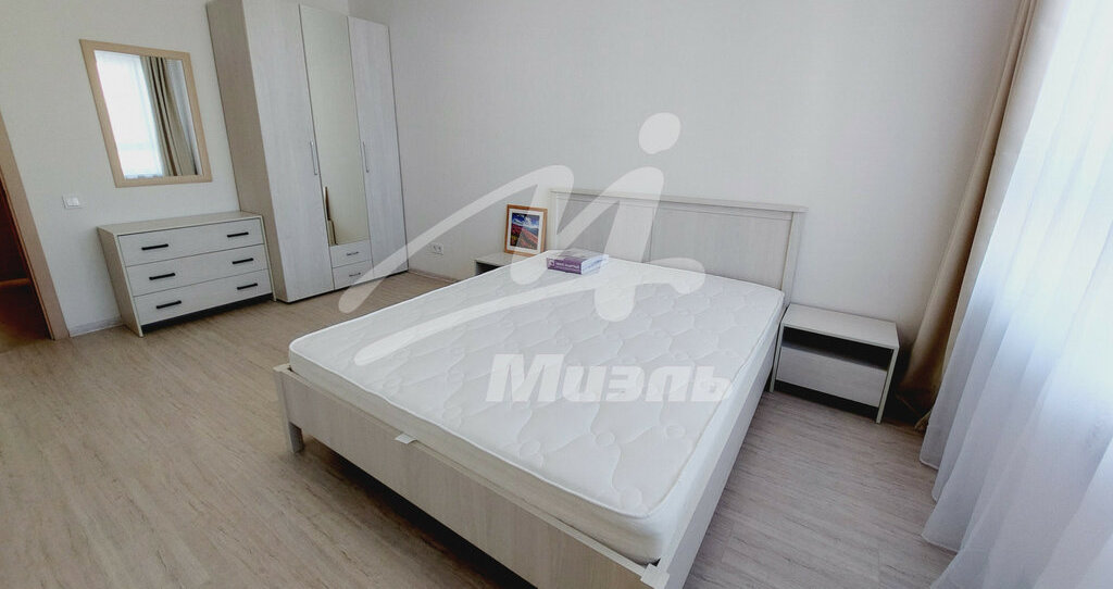 Спальня: 2-х спальная кровать с ортопедическим матрасом, 2 тумбы, шкаф, комод с зеркалом.
