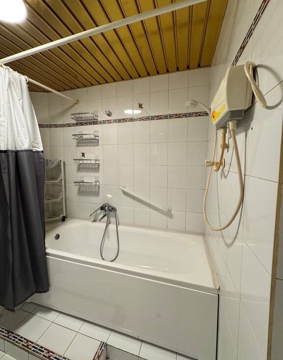 Из техники в наличии: кондиционер, холодильник, телевизор и стиральная машина.