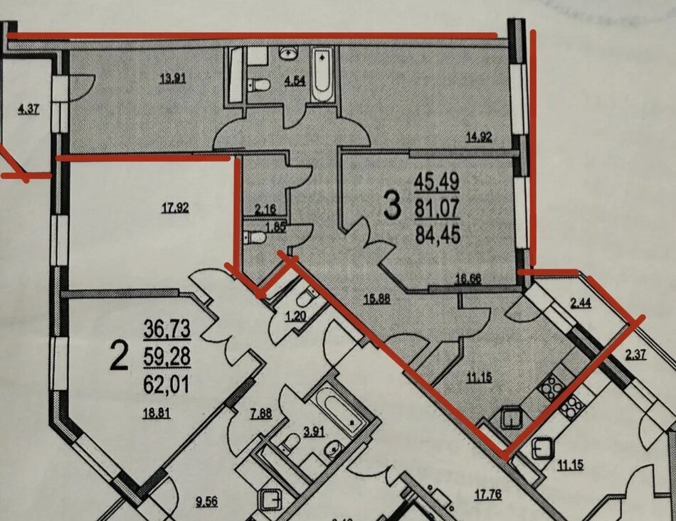 Комнаты: 16,7 / 15 / 14 м²