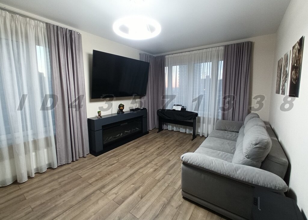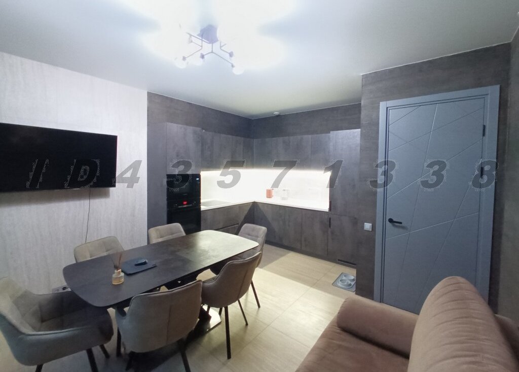 - холодильник, посудомоечная машина, стиральная машина, варочная панель (электроплита), духовой шкаф, СВЧ-печь, два телевизора (основной более 60 дюймов), мойка воздуха, утюг, фен, робот-пылесос, кухонный гарнитур, кухонный стол, стулья;
