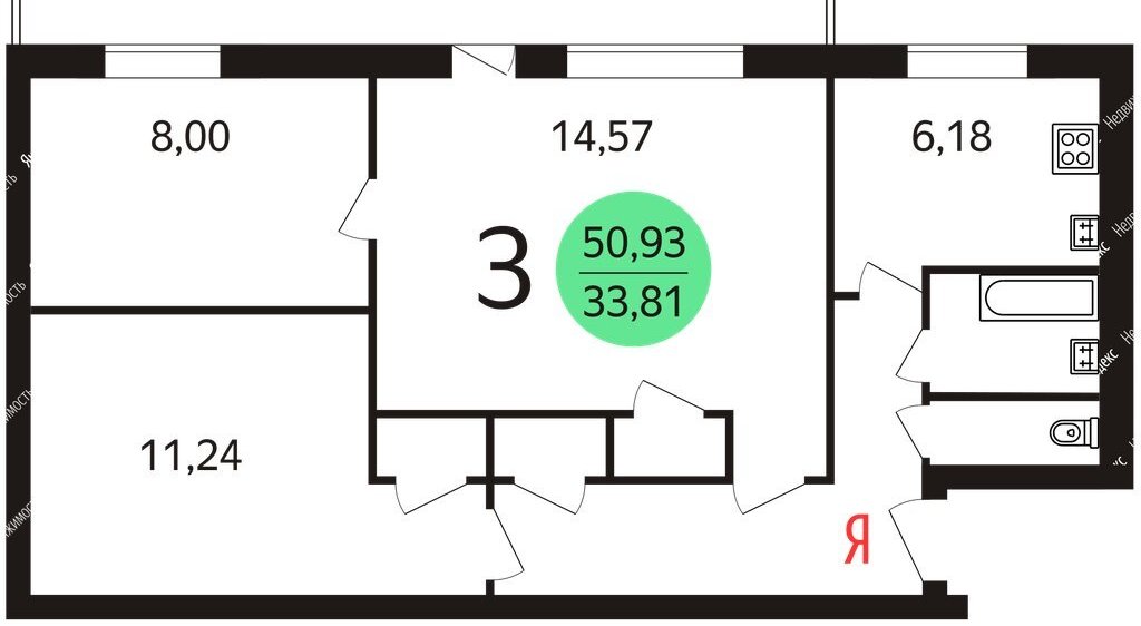 3-комнатная квартира: Москва, Амурская улица, 8 (50.93 м²)