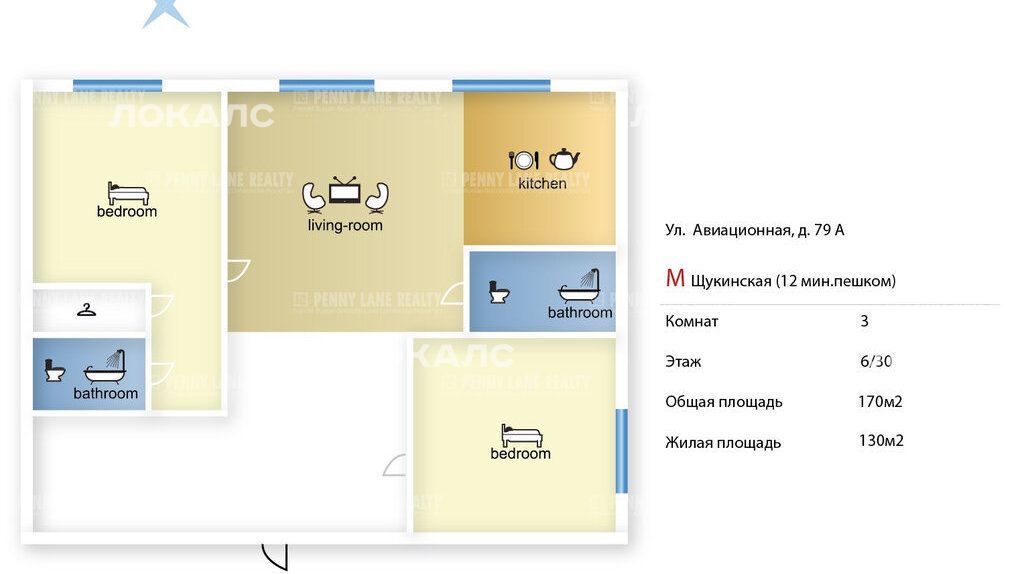 3-комнатная квартира: Москва, Авиационная улица, 79А (170 м²)