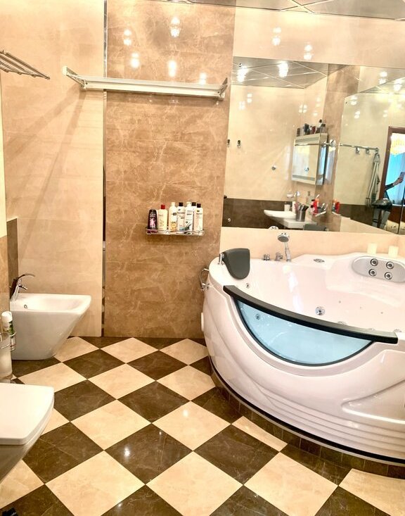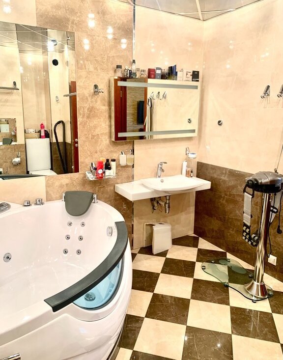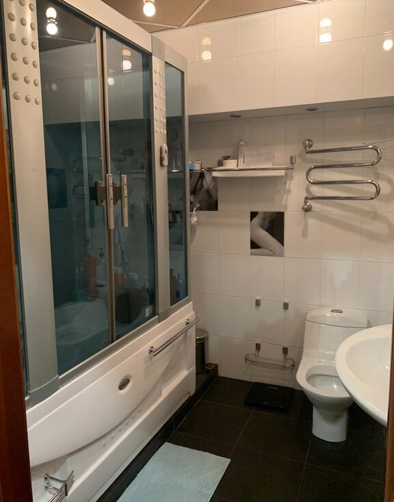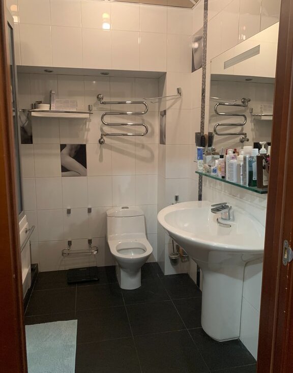 - 3 раздельных санузла в кафеле, гостевой возле прихожей, и два к каждой спальне. -установлены бойлер Electrolux, новые счетчики горячей/холодной воды,