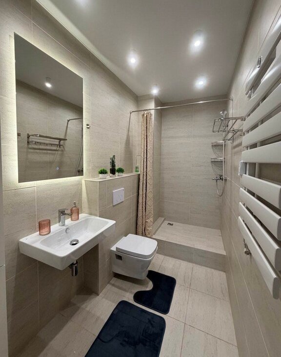 Сдаётся на продолжительный срок новая квартира с террасой и прекрасным ремонтом . Две спальни изолированы , кухня совмещена с гостиной. Также в квартире две гардеробные комнаты , одна постирочная. Квартира укомплектована новой современной мебелью. Бытовая техника, телевизор, два кондиционера, посудомоечная и стиральная машины, варочная панель, СВЧ, утюг, чайник, холодильник , вытяжка. Два санузла, в одном душ, во втором ванна. Прекрасным бонусом входит терраса в 60м2 , в теплое время года можно организовать на ней гриль или просто посидеть на качелях . Огорожена, охраняемая территория. В подъезде велосипедные и колясочные. Без животных.