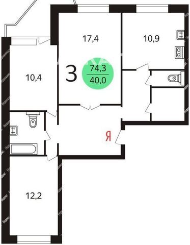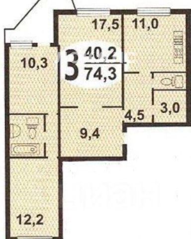 3-комнатная квартира: Москва, Белореченская улица, 24 (74.3 м²)