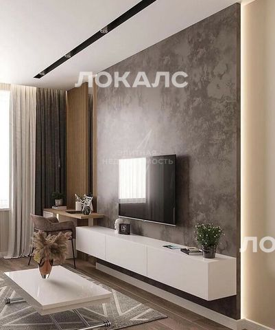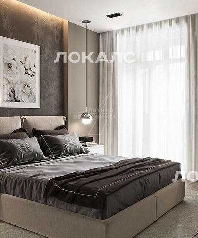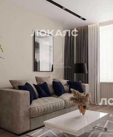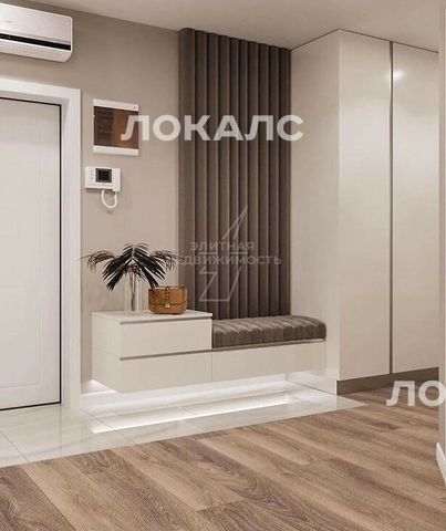 Планировка включает просторную кухню-гостиную, спальню, гардеробную комнату и современный санузел. Установлены кондиционеры, подогрев полов, панорамные окна с видом на Москву-реку.
