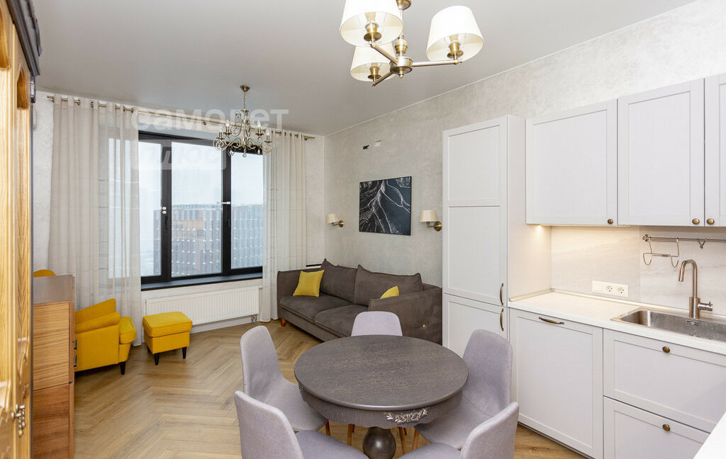 В самой квартире - две отдельные спальни и просторная кухня-гостиная, совмещённый санузел, постирочная и гардеробная. Из окон открывается вид на Москва-реку и набережную.