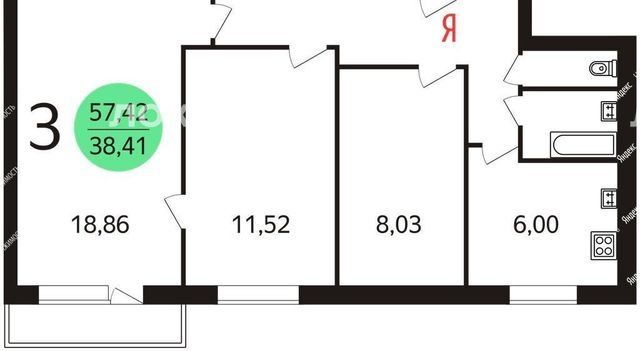 3-комнатная квартира: Москва, Бирюлёвская улица, 52к1 (58.5 м²)