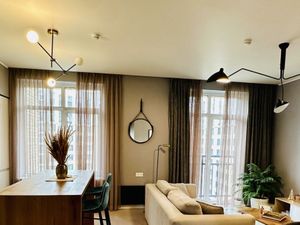 Особое внимание уделено качеству отделки: дизайнерский ремонт выполнен исключительно из высококачественных материалов. Планировка включает просторную гардеробную, кухню-гостиную, уютную спальню, а также гостевую комнату или детскую. Каждая комната оснащена встроенными шкафами, обеспечивающими максимальное удобство для хранения вещей.