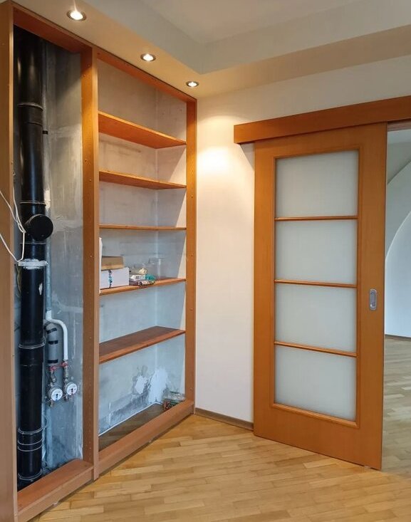 Квартира меблирована частично - в спальне, кухне, холле встроенные каркасы шкафов Пакс, ИКЕА (фасады для этих шкафов по доступным ценам продаются на Авито).