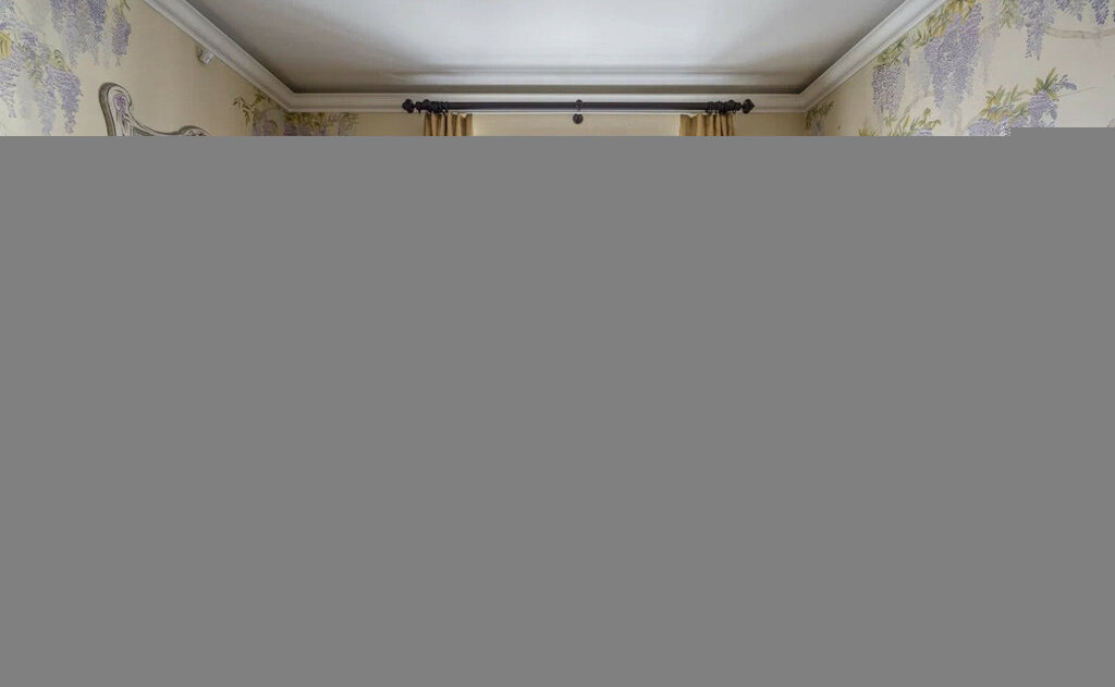 Не кричащий, а спокойный и дорогой по ощущению. Портьеры, шелкография на стенах, мягкий свет, паркет, текстиль, который собирает пространство воедино.