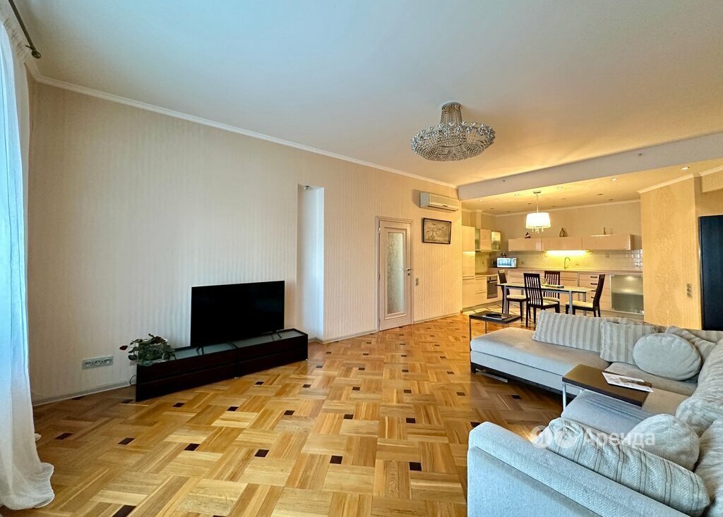 Сдаётся 3-комнатная квартира площадью 110 кв.м. с евроремонтом на 4 этаже в 57-этажном доме на срок от 11 месяцев. Из техники есть: