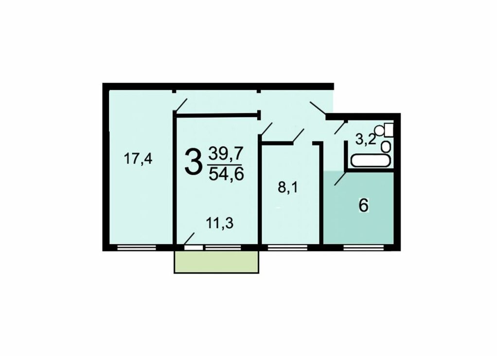 3-комнатная квартира: Москва, Черноморский бульвар, 17к2 (55 м²)