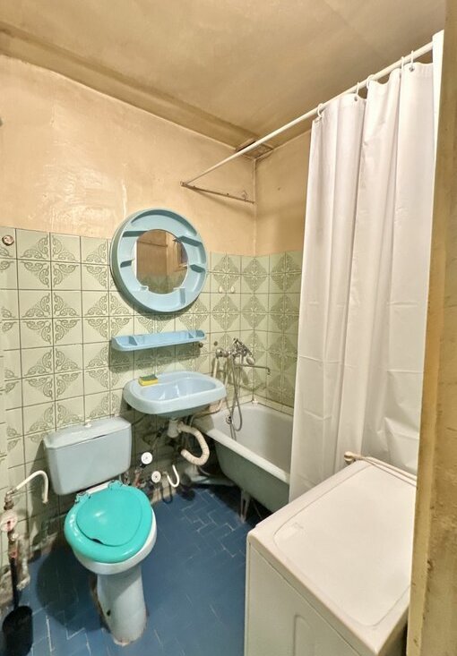 Имеется вся необходимая мебель (двуспальная кровать, кровать одноместная, шкафы, стенка, комод, стол письменный складной) и бытовая техника (стиральная машина, холодильник , телевизор) Кухонная наборная мебель, обеденный стол со стульями. Сан. узел. совмщенный