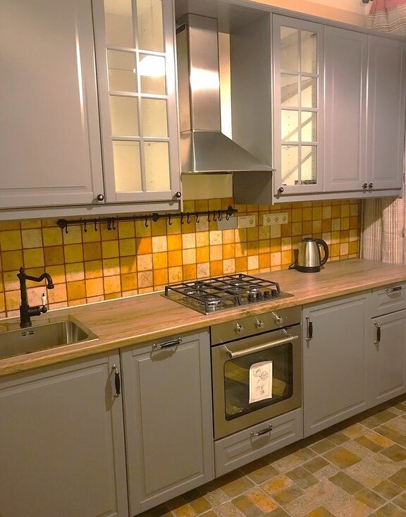 ТЕХНИКА: варочная газовая панель, духовой+вытяжной шкафы, холодильник, стиральная и посудомоечная машины, Интернет-канал.