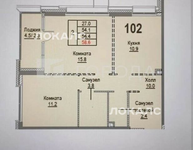 3-комнатная квартира: Москва, Газгольдерная улица, 10 (54 м²)