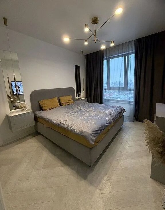 Квартира находится на 9 этаже . В корпусе Беринг 14 этажей и лифт ждать долго не приходится, как в других 40-этажных корпусах ( есть пассажирский и грузовой лифты).