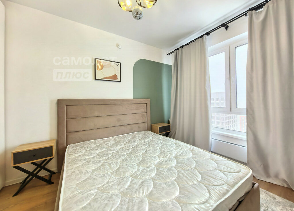 Квартира с Евроремонтом, расположена на 31-ом этаже 34-этажного здания. Высокие потолки создают ощущение простора. Окна выходят во двор, что обеспечит вам тишину и спокойствие.