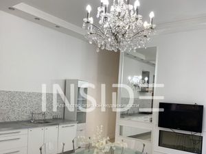 Грамотно поделена площадь на кухонную зону, зону столовой и гостиной, объединенных единым пространством площадью 35м, что позволит вечерами собираться всем членам семьи за большим круглым столом или удобно расположившись на большом диване. Также есть спальня и детская комната. гардеробная с многочисленными полками и местом для хранения и большая ванная комната с теплым полом из слеба мрамора ,также теплый пол на кухне и коридоре. В прихожей вместительный встроенный шкаф. В квартире вся современная техника и кондиционеры, есть также предметы мебели привезённые из других стран.